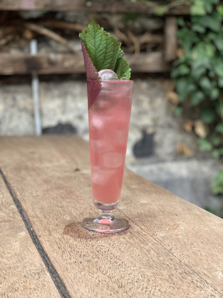 Sex Apple : Gin Tanqueray + liqueur de pomme verte + sirop d’orgeat + infusion de thé fruits rouges + citron.